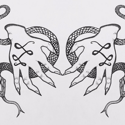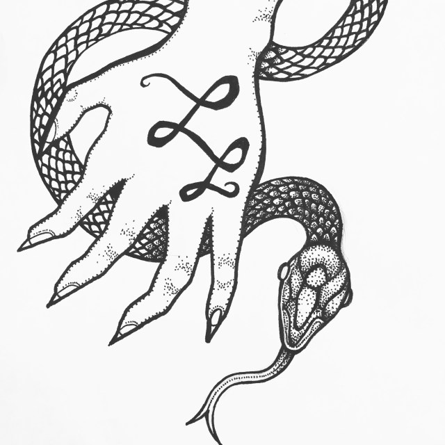 Slithering Along On September 20, 2016 By LefthandedLenyaIn creepy crawlies, Illustrations, things that go bump in the night Making progress on this design that incorporates my logo – I’m starting to like it oriented with the hand reaching down instead of up! Share this: Click to share on X (Opens in new window) X Click to share on Facebook (Opens in new window) Facebook Like Loading... Related