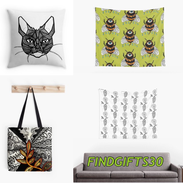 Just visit my Redbubble shop and use the coupon code FINDGIFTS30